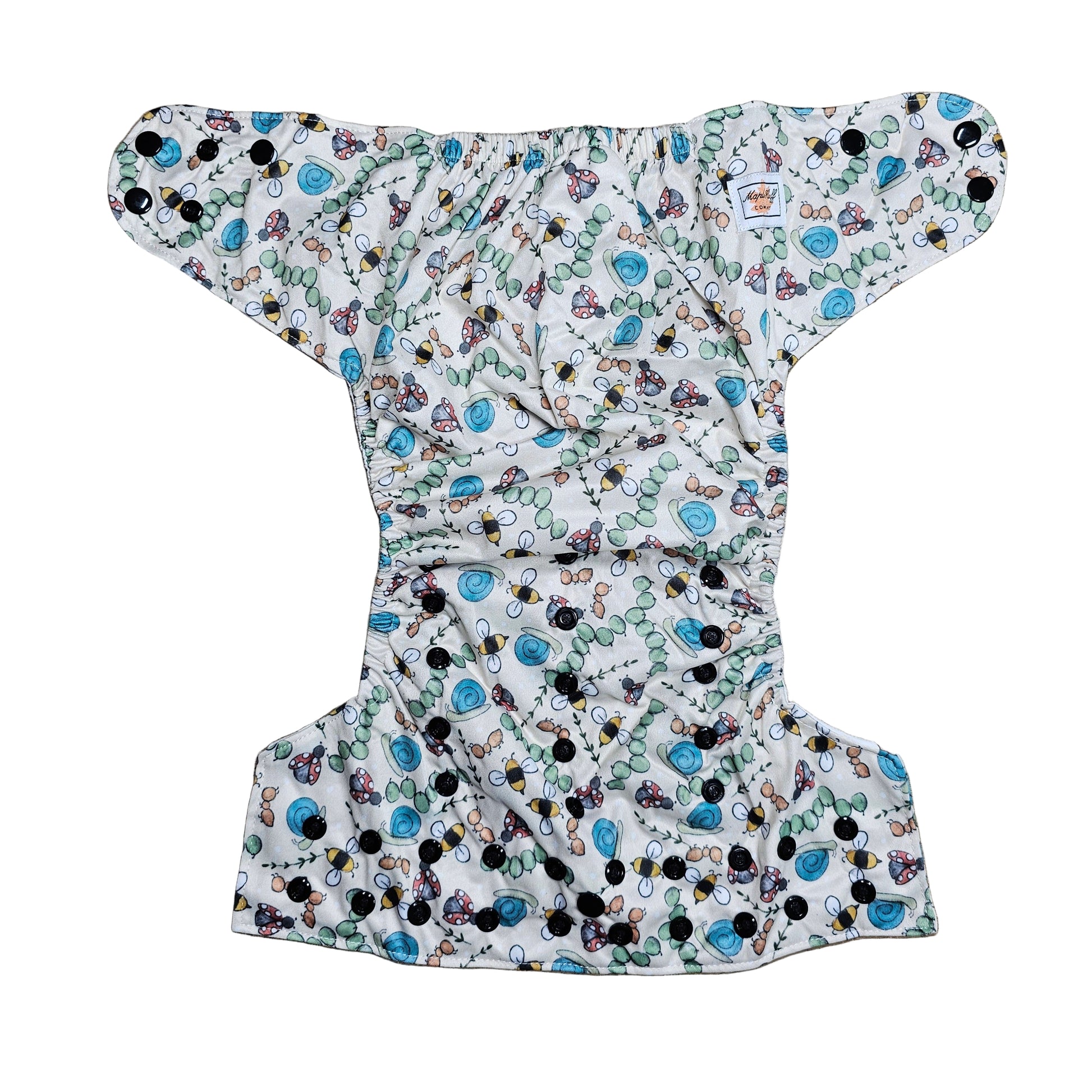 🌿 Adjustable Snaps – 2 x 10 waist snaps with a middle indicator, plus an upper hip snap and wrap snaps for slimmer waist fits or sealing dirty diapers on the go.