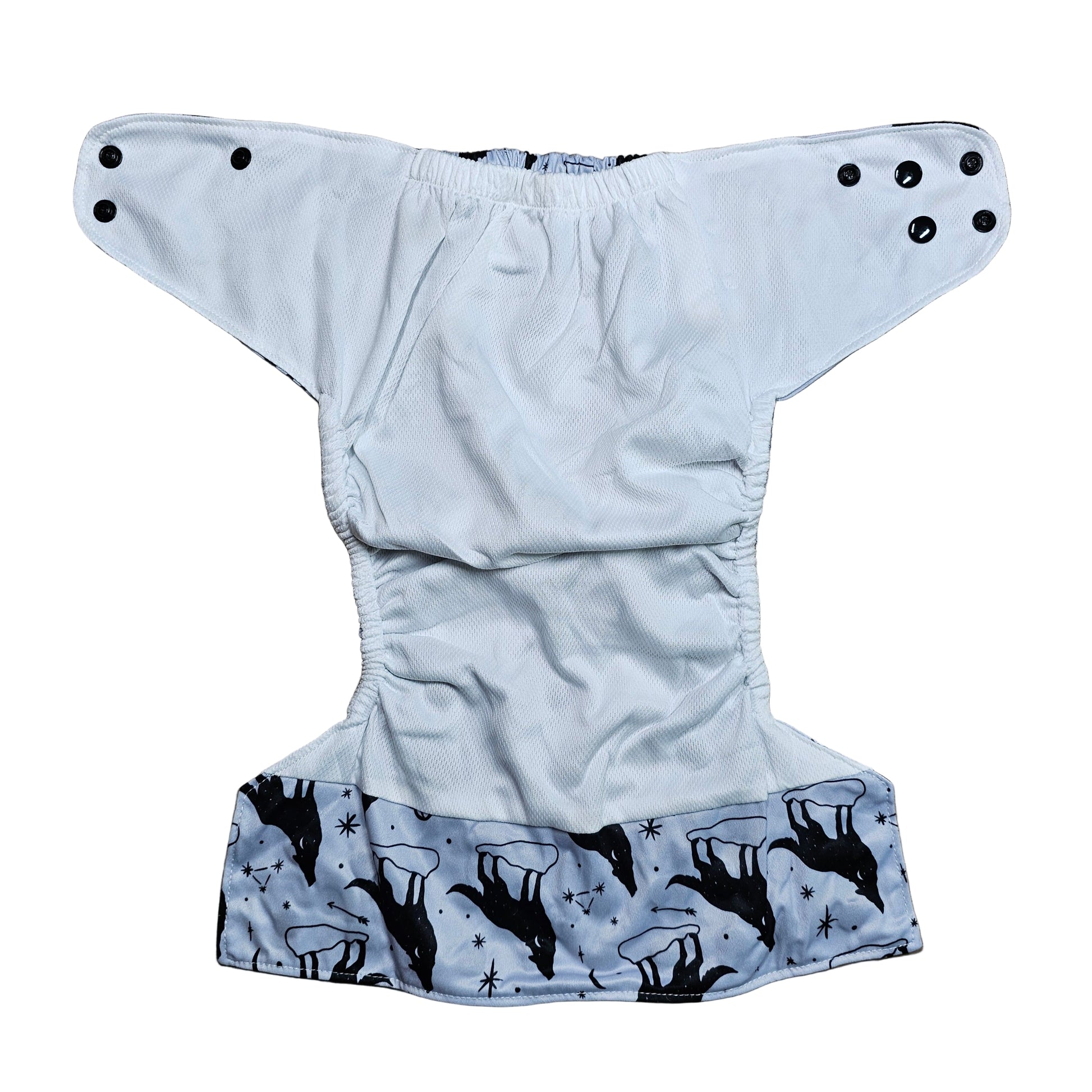🌿 Adjustable Snaps – 2 x 10 waist snaps with a middle indicator, plus an upper hip snap and wrap snaps for slimmer waist fits or sealing dirty diapers on the go.