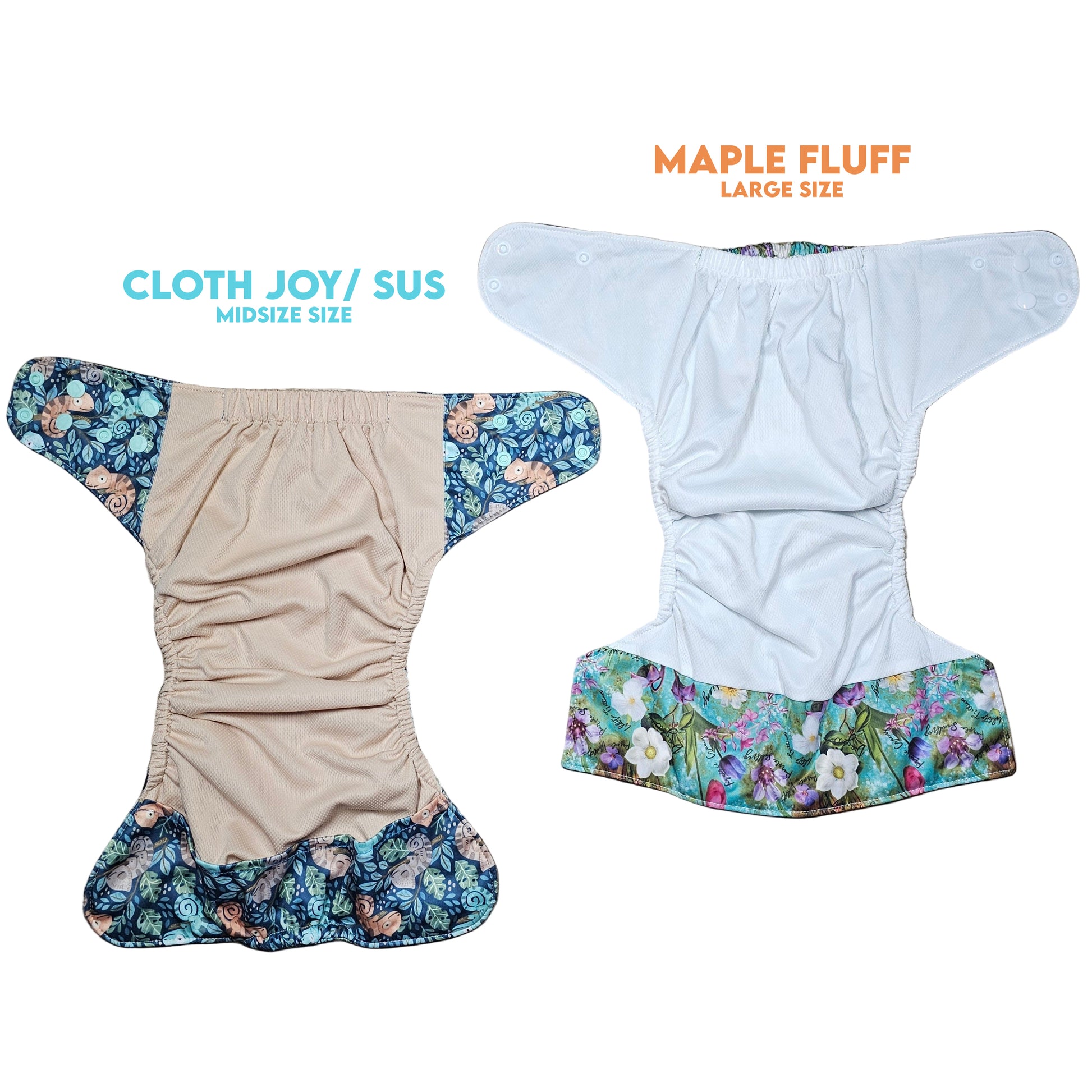 The Maple Fluff pockets are close in fit to our beloved Midsize™ diapers, offering a roomy, comfortable option for growing babes. Designed to fit from about 10 lbs all the way up to 65+ lbs, they’re built to carry your little one through the baby, toddler, and even preschool years. Each diaper is thoughtfully made with practical features to make cloth diapering easier for parents and more comfortable for little ones.