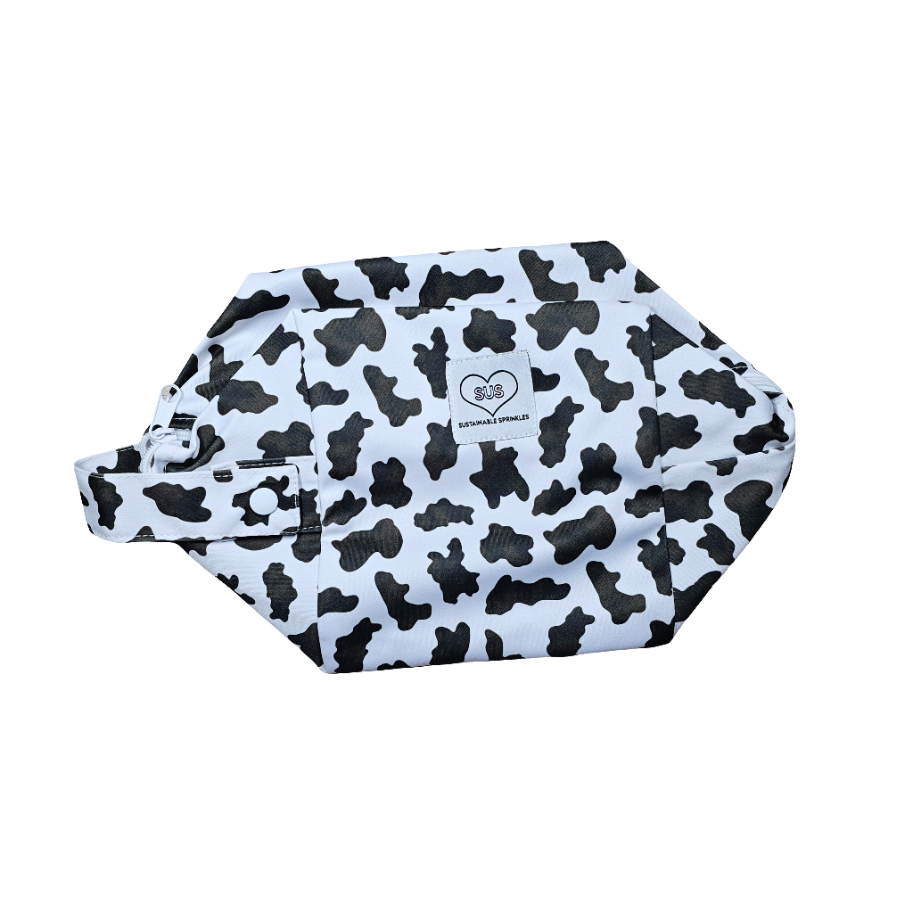 A custom sized pod double lined pul so its waterproof, features 2 outer zippered pockets and a hand carrying strap for carrying on one end. Fits 6 stuffed diapers inside.